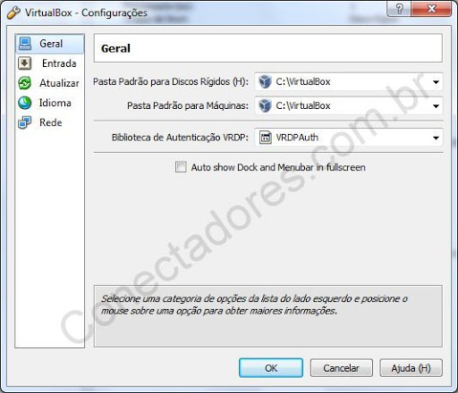 Preferências da VirtualBox