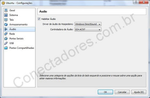 Escolhe o driver e o tipo de controladora de áudio