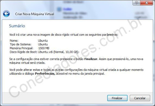 Ao final de tudo é apresentado um resumo da VM a ser criada: